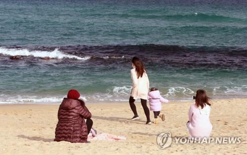 이호, 한담, 함덕, 월정 등 제주도의 유명 해변에는 모처럼 내리쬐는 햇살과 겨울바다를 즐기려는 주민들로 북적거렸다.