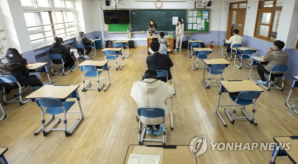 ▲ A recruitment test for public servants is under way at a school in the central city of Daejeon on March 6, 2021, with applicants sitting apart to prevent coronavirus infections, in this photo provided by the Ministry of Personnel Management. (PHOTO NOT FOR SALE) (Yonhap)