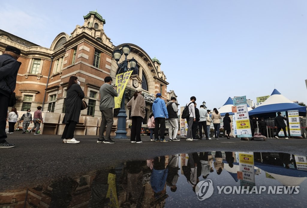 | ▲ People wait in line to take coronavirus tests at a screening center in front of Seoul Station on Nov. 1, 2021, the first day of the "living with COVID-19" measures that South Korea has adopted to phase out coronavirus restrictions and reopen the economy amid rising vaccination levels. (Yonhap) |