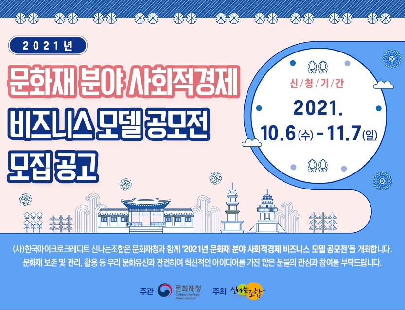▲ 문화재청은 6일부터 다음 달 7일까지 문화재 분야 사회적 경제 비즈니스 모델을 공모한다.