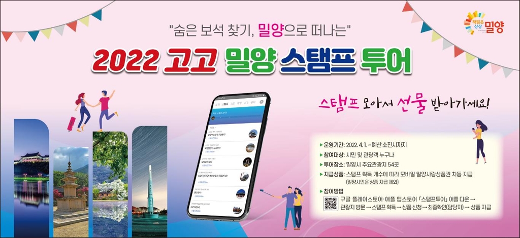 (밀양=연합뉴스) 이정훈 기자 = 경남 밀양시는 다른 지역 관광객을 대상으로 4월 1일부터 '고고(GoGo) 밀양 스탬프 투어'를 시작한다고 29일 밝혔다.