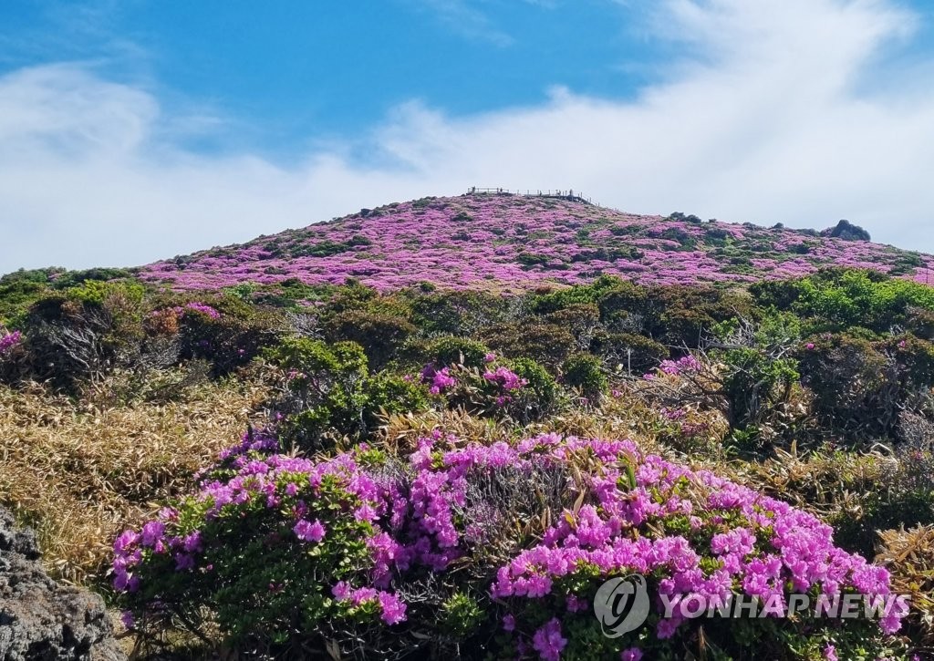 제주 한라산에는 만발한 철쭉을 구경하려는 등산객 발길이 이른 오전부터 계속됐다.