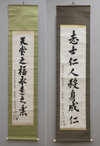 | ▲ 안중근 유묵 '천당지복영원지락'(왼쪽)과 '지사인인살신성인'. [삼성문화재단 제공. 재판매 및 DB 금지] |