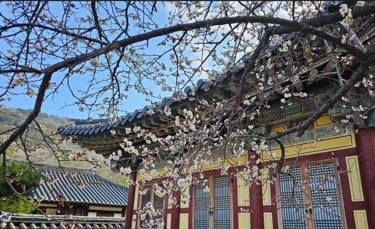 (해남=연합뉴스) 조근영 기자 = 천년고찰 전남 해남군 대흥사 적묵당 앞 '대흥매(大興梅)'가 봄을 맞아 일제히 꽃망울을 터트리며 산사를 은은한 향기로 가득 채우고 있다.