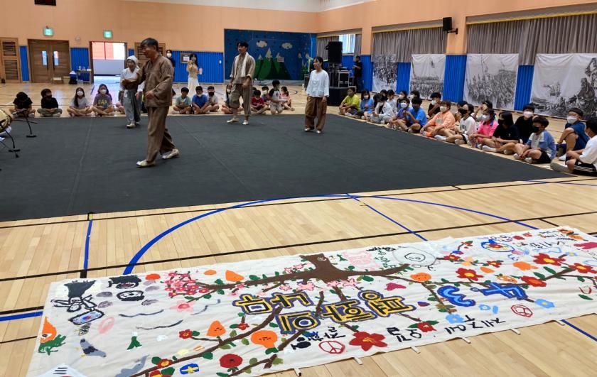 (제주=연합뉴스) 제주도교육청은 제주민예총과 함께 6일 제주시 하도초등학교 학생들을 대상으로 제주 청소년 평화예술제 '찾아가는 청소년 4·3 문화교실'을 운영했다.