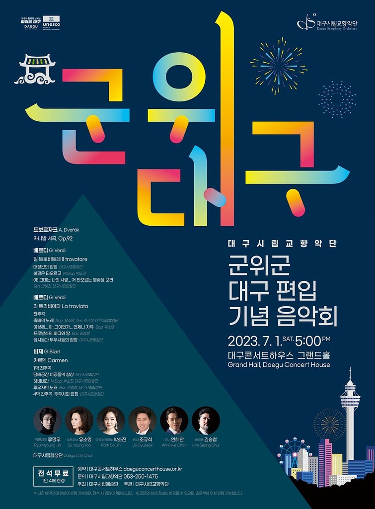 (대구=연합뉴스) 류성무 기자 = 대구시립교향악단은 다음 달 1일 오후 5시 대구콘서트하우스 그랜드홀에서 '군위군 대구 편입 기념 음악회'를 개최한다고 15일 밝혔다.
