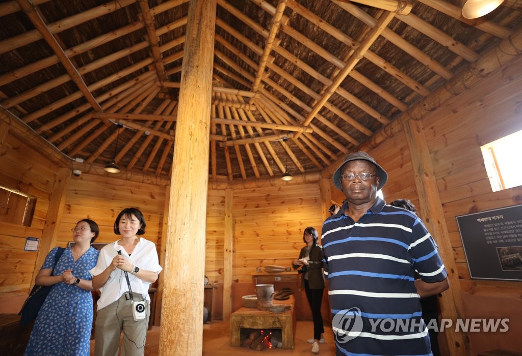 | ▲ 백제시대 살림집 둘러보는 은도로 사무총장 (서울=연합뉴스) 이재희 기자 = 웨버 은도로 국제문화재보존복구연구센터(ICCROM) 사무총장이 19일 오전 서울 송파구 풍납 백제 문화공원을 찾아 백제시대 살림집을 재현해 놓은 곳을 둘러보고 있다. 2023.7.19 scape@yna.co.kr |