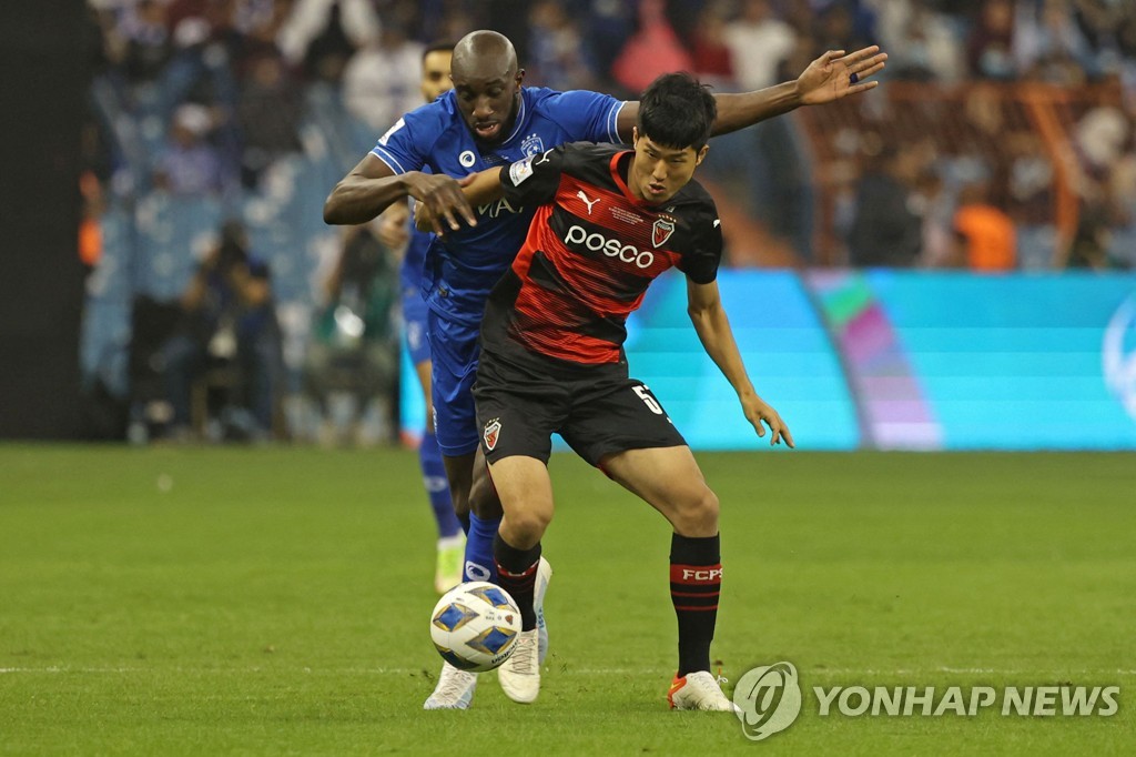 | ▲ In this AFP photo, Gwon Wan-gyu of Pohang Steelers (L) and Salem Al-Dawsari of Al Hilal vie for the ball during the final of the Asian Football Confederation Champions League at King Fahd International Stadium in Riyadh on Nov. 23, 2021. (Yonhap) |