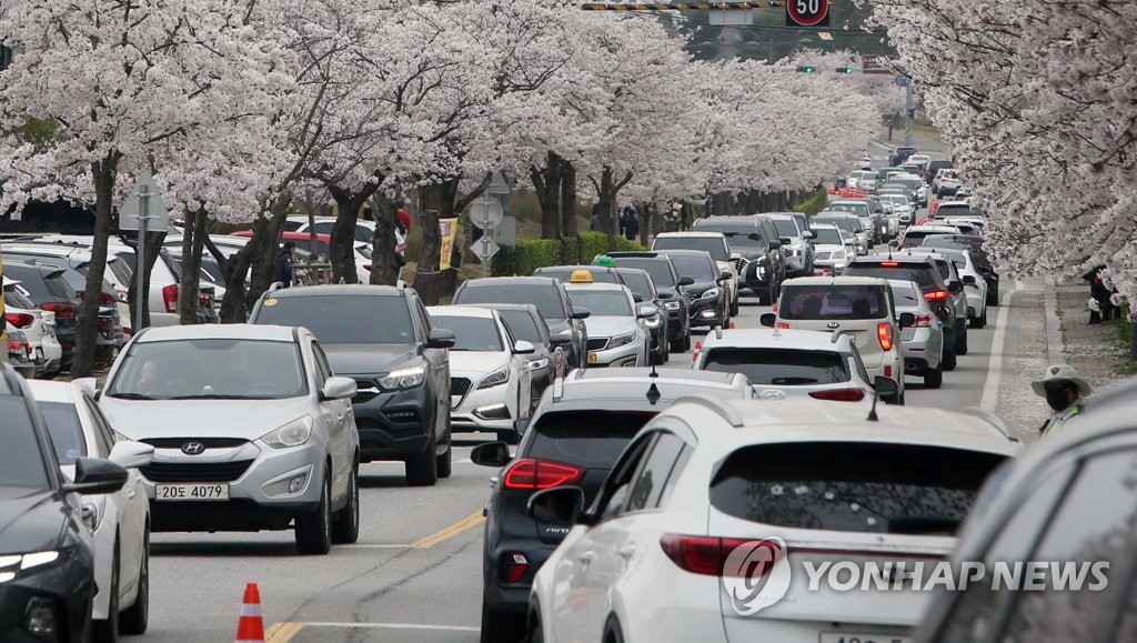 강원 강릉 경포호로 향하는 도로의 경우 드라이브 스루로 벚꽃을 감상하려는 행락객이 몰려 다른 지역과 대조를 보이기도 했다.