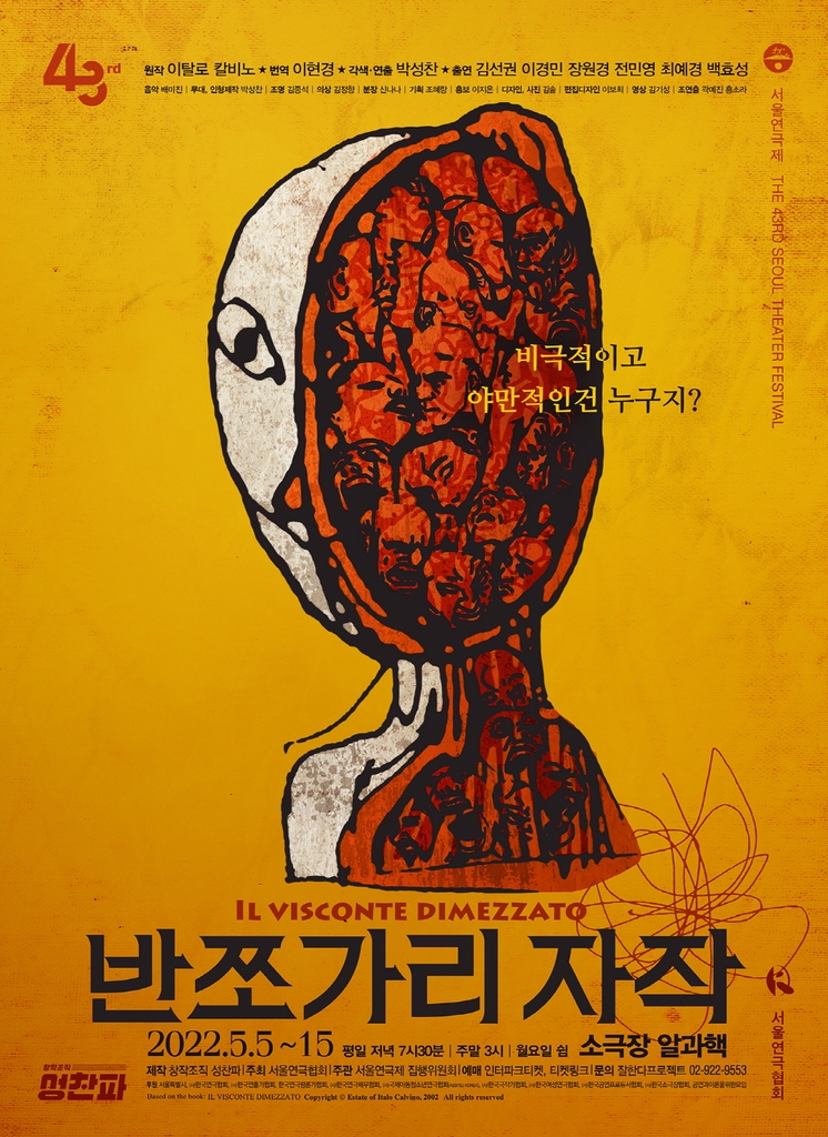 ▲ 서울연극제 참가작 '반쪼가리 자작' = 이탈리아 작가 이탈로 칼비오의 소설을 원작으로 한 연극 '반쪼가리 자작'이 다음 달 5∼15일 대학로 알과핵극장에서 서울연극제 공식선정작으로 다시 상연된다.