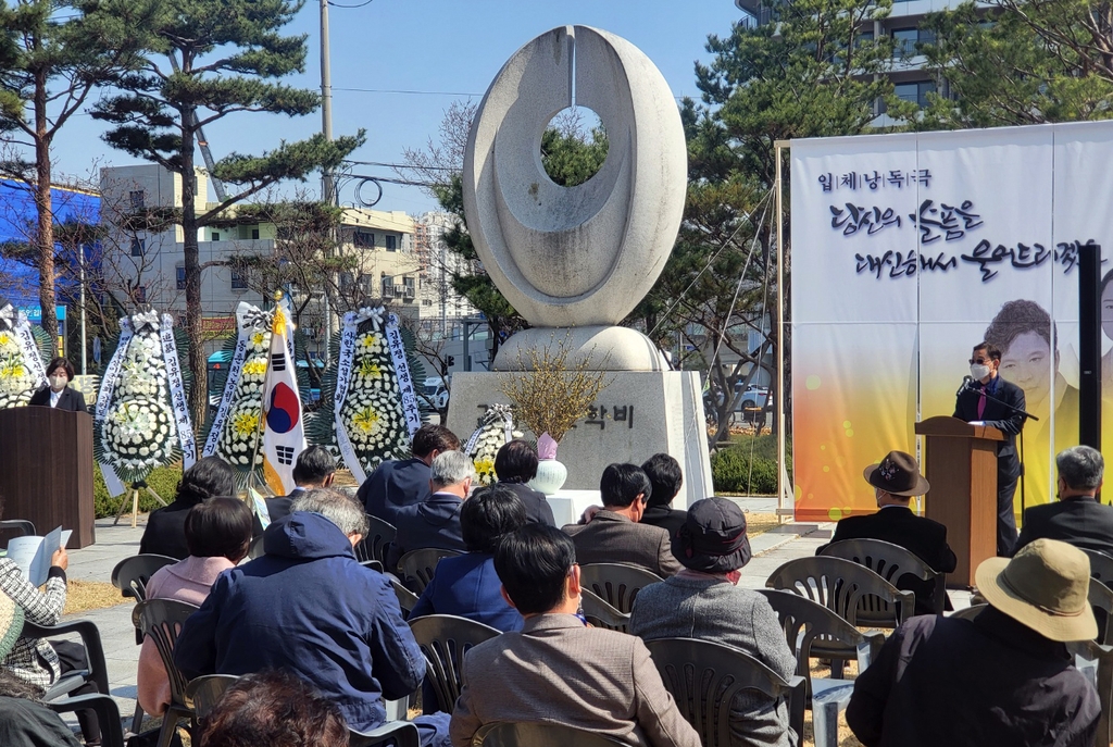 동백꽃 헌화에 이어 지역 문인들이 발간한 추모 문집 봉정 등이 진행됐다.