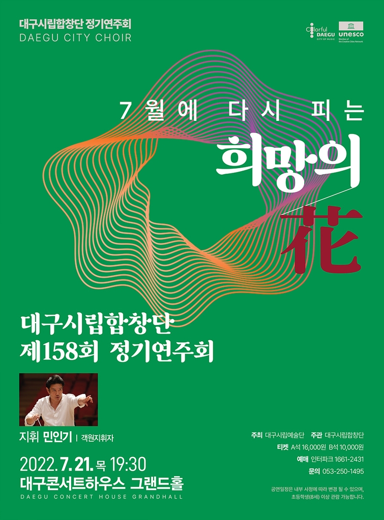 (대구=연합뉴스) 류성무 기자 = 대구시립합창단은 오는 21일 오후 7시 30분 대구콘서트하우스 그랜드홀에서 '7월에 다시 피는 희망의 꽃'을 주제로 정기공연을 한다.