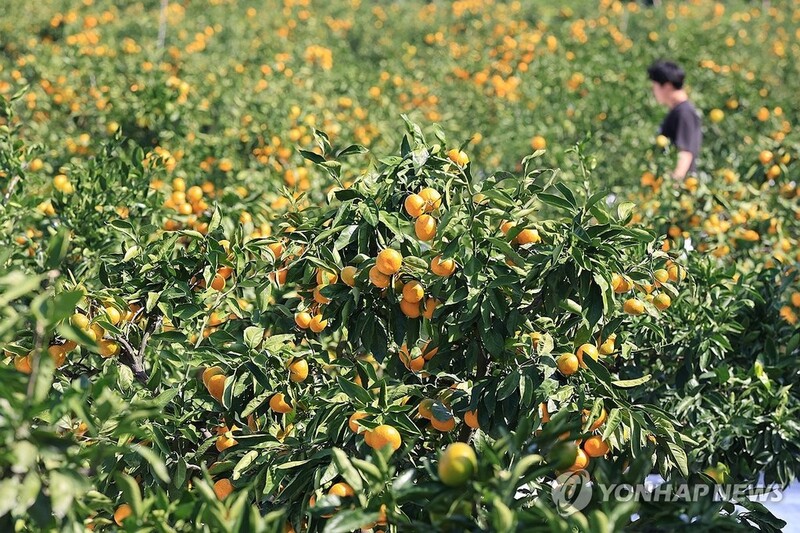 | ▲ 이제 감귤의 계절 (제주=연합뉴스) 박지호 기자 = 11일 오후 제주시 도평동의 한 과수원에 감귤이 주렁주렁 열려 있다. 2023.10.11 jihopark@yna.co.kr |