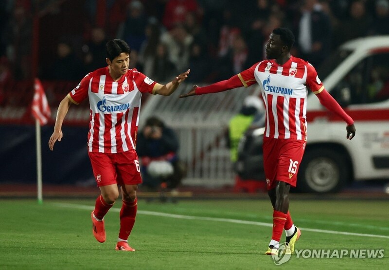 (서울=연합뉴스) 이영호 기자 = 한국 축구대표팀의 오른쪽 풀백 설영우(즈베즈다)가 유럽축구연맹(UEFA) 챔피언스리그 무대에서 도움으로 자신의 첫 공격포인트를 따냈지만, 팀의 완패로 빛이 바랬다.