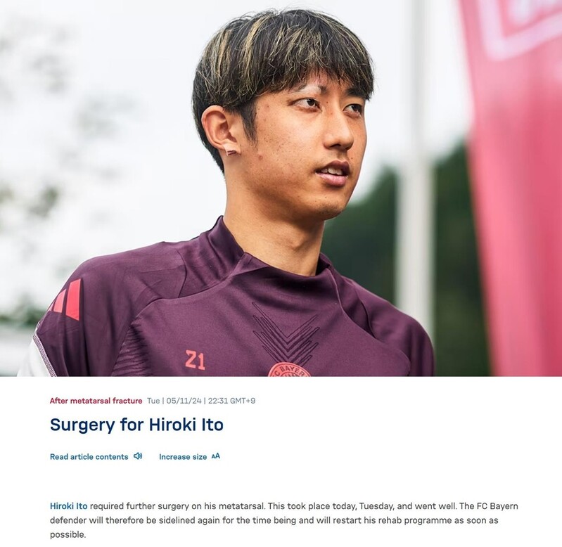 | ▲ 이토 히로키의 재수술을 사실을 공개한 뮌헨 구단 [바이에른 뮌헨 홈페이지 캡처. 재판매 및 DB 금지] |