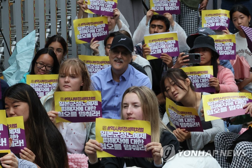 한국인 아내를 둔 곤자가대의 윌리엄 헤이즈(60) 교수를 비롯한 교직원 3명과 학생 14명은 21일 서울 종로구 옛 주한 일본대사관 인근에서 열린 수요시위에 참여했다.