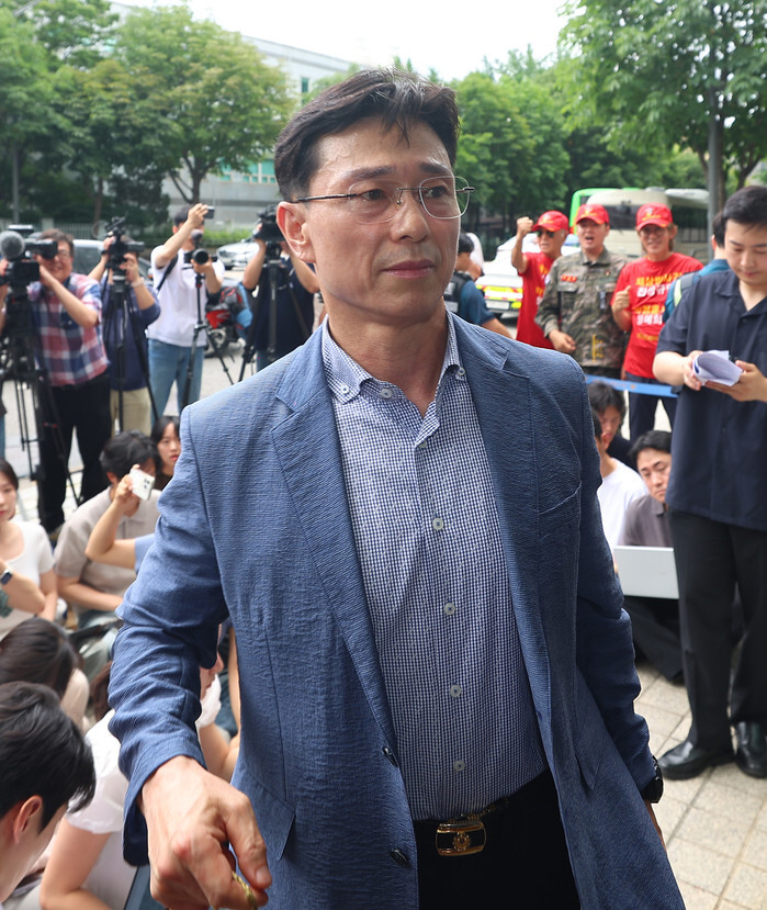 Lim Seong-geun, former commander of the 1st Division of the Marine Corps, appears at the office of a special counsel team in Seoul on July 2, 2025, to be questioned over a series of allegations surrounding the death of a Marine, Chae Su-geun, in July 2023. (Yonhap)