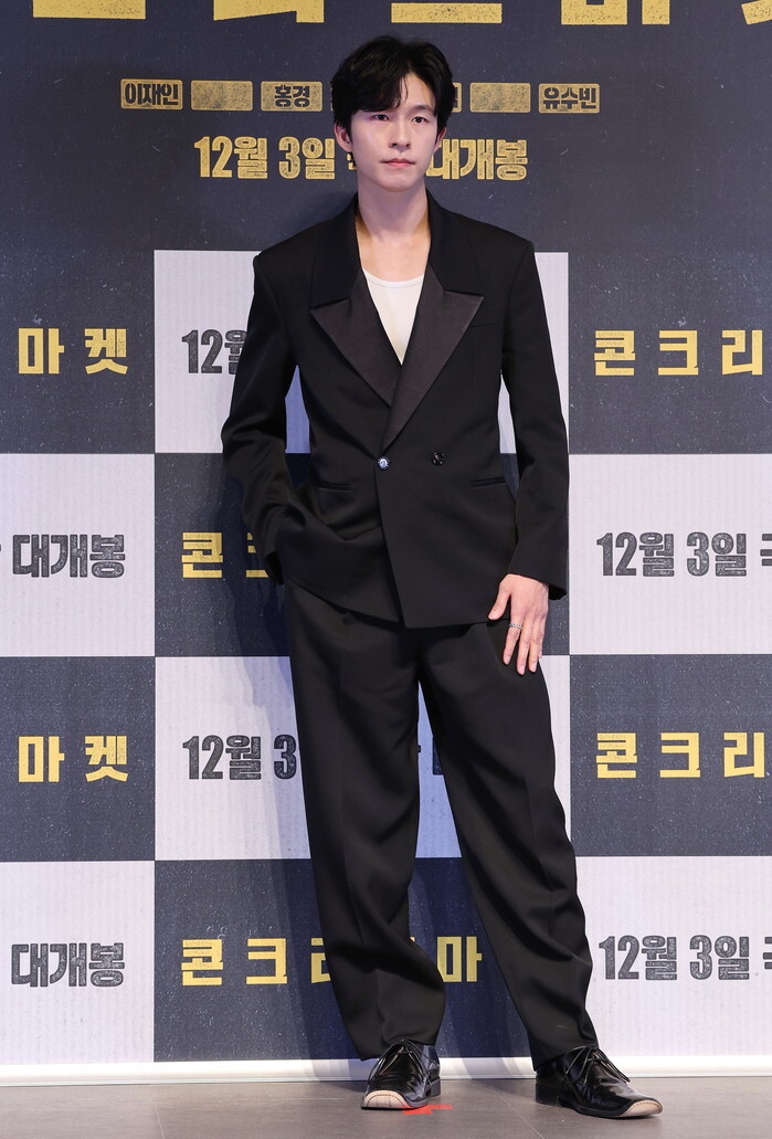 South Korean actor Hong Kyung, who stars in the new movie "Concrete Market," poses for a photo during a publicity event in Seoul on Dec. 1, 2025, to promote the movie, set to hit local screens in South Korea on Dec. 3. (Yonhap)