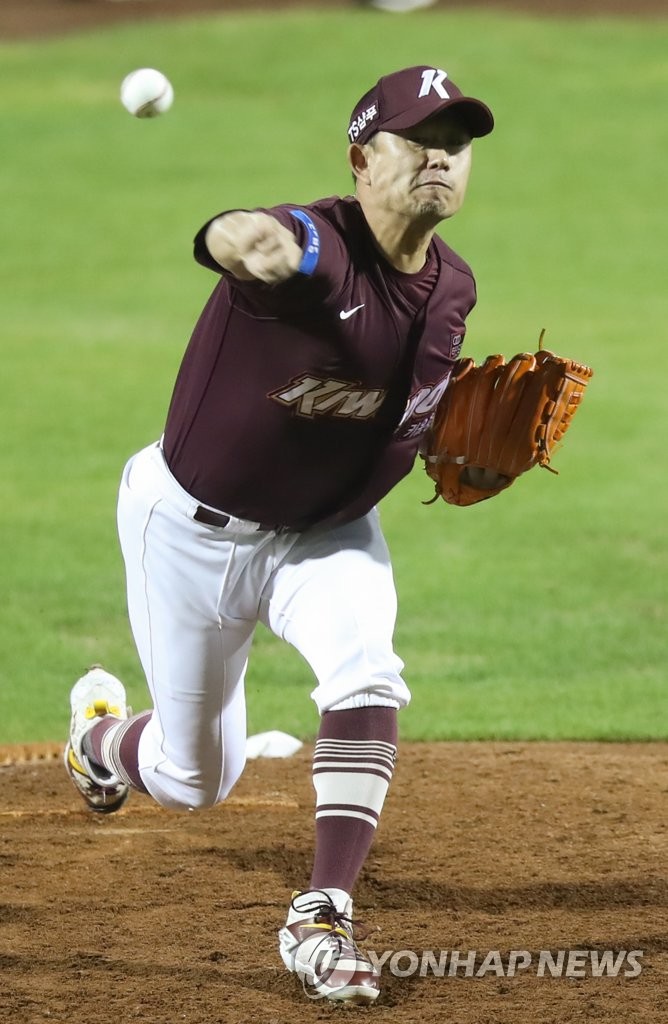 ▲ In this file photo from Sept. 3, 2020, Kim Sang-su of the Kiwoom Heroes pitches against the Hanwha Eagles in the bottom of the seventh inning of a Korea Baseball Organization regular season game at Hanwha Life Eagles Park in Daejeon, 160 kilometers south of Seoul. (Yonhap)