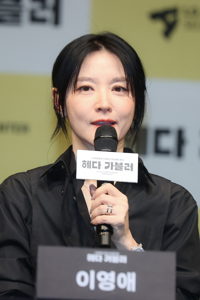 South Korean actress Lee Young-ae, who stars in the new play "Hedda Gabler," responds to reporters' questions during a publicity event in Seoul on April 8, 2025. The play will runs from May 7 to June 8. (Yonhap)