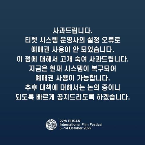 | ▲ BIFF 측 시스템 오류 사과 [부산국제영화제 SNS 캡처] |