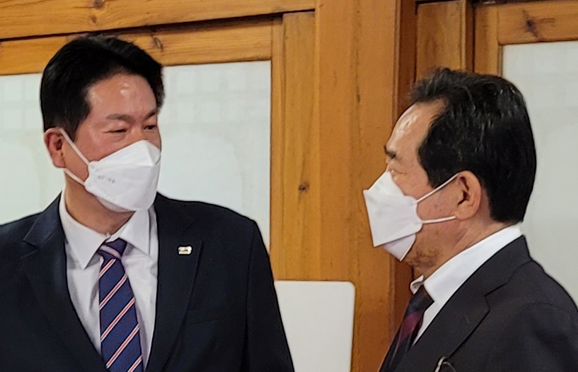 | ▲ 15일 정세균 국무총리(오른쪽)를 만나 도장 지원책 마련을 요청한 이동섭 국기원장 [국기원 제공. 재판매 및 DB 금지] |