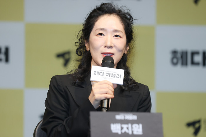 South Korean actress Baek Ji-won, who stars in the new play "Hedda Gabler," attends a publicity event in Seoul on April 8, 2025. The play will run from May 7 to June 8. (Yonhap)