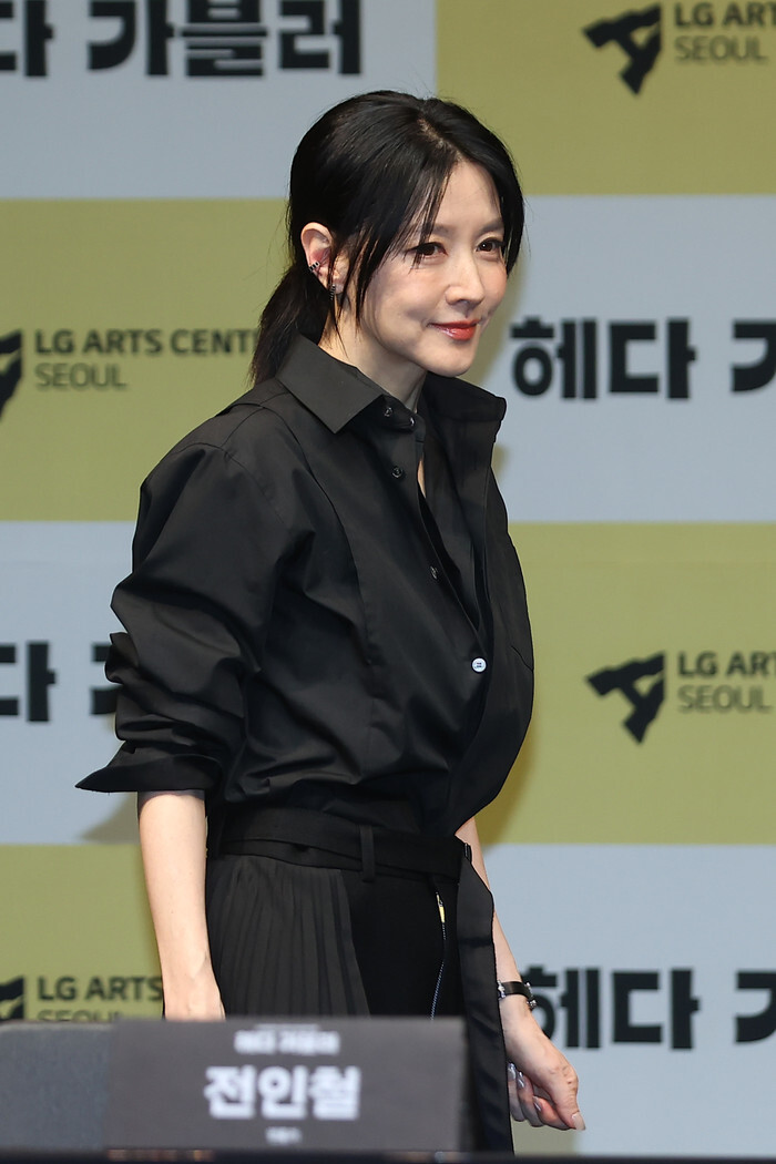 South Korean actress Lee Young-ae, who stars in the new play "Hedda Gabler," attends a publicity event in Seoul on April 8, 2025. The play will runs from May 7 to June 8. (Yonhap)