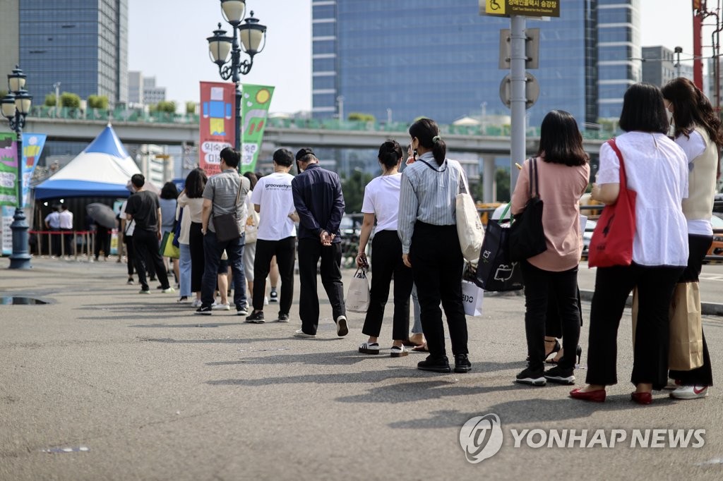 | ▲ People stand in line to get tested for COVID-19 at a testing center in Seoul Station, central Seoul, on July 1, 2021. (Yonhap) |
