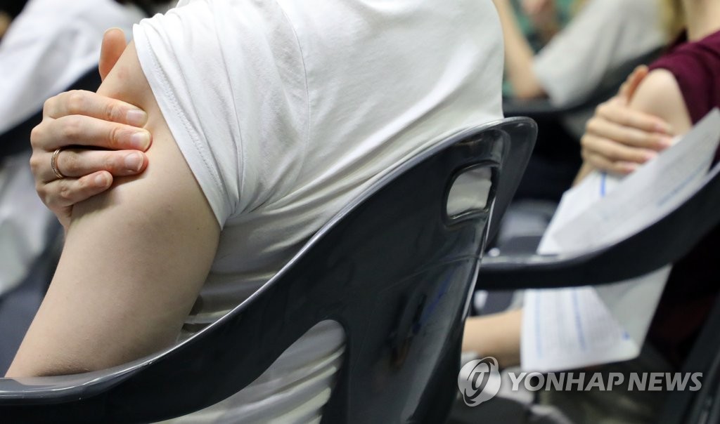 | ▲ People press their arms after receiving COVID-19 vaccine shots at an inoculation center in Seoul on Sept. 14, 2021. (Yonhap) |