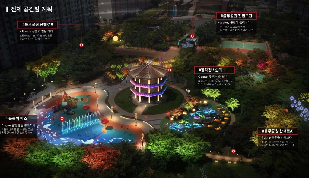 군은 계절감을 느낄 수 있는 낙엽 관목 1천 그루를 추가로 심고 팔각정 조명과 조형물을 설치한다.