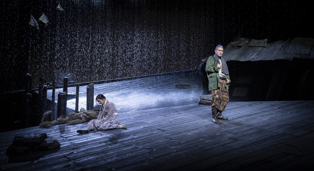 (서울=연합뉴스) 임동근 기자 = 급경사의 무대에 반쯤 기울어진 양철집이 위태롭게 서 있다. 대대로 물고기를 잡아 온 곰치의 집이다. 그는 할아버지와 아버지가 바다에서 죽고, 아들 셋도 바다에서 잃었지만, 뱃일을 고집하며 만선의 꿈을 접지 못한다.