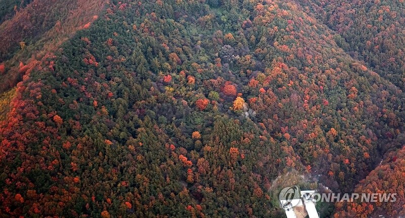 | ▲ 가을 속으로 (괴산=연합뉴스) 임헌정 기자 = 완연한 가을 날씨를 보인 27일 충북 괴산 인근의 야산이 단풍으로 물들고 있다. 2023.10.27 kane@yna.co.kr |