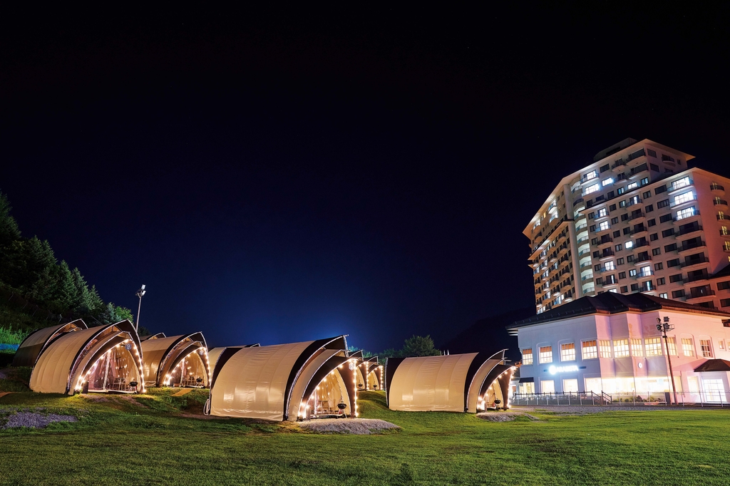 앨리시안강촌 리조트 내에 있는 캠핑파크는 글램핑존과 오토캠핑존으로 꾸몄다.