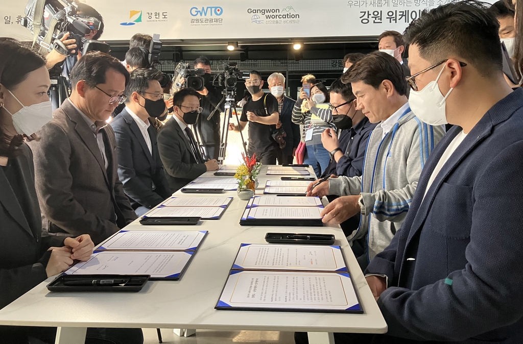 강원도는 13일 서울 강남에서 열린 '2022 강원 워케이션 데이' 설명회에서 사전에 협의한 7개 기업과 워케이션 활성화를 위한 업무협약을 했다.