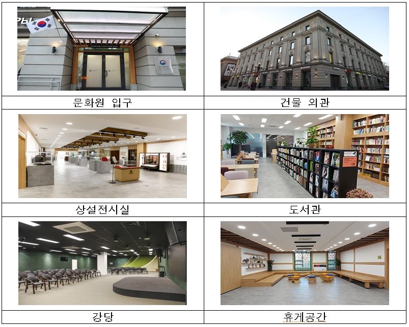 건물 매입비(4층 단독건물의 3~4층 매입)와 공사비 등 270억 원이 투입된 주러시아 한국문화원은 예전보다 2배 이상 넓은 2천600㎡ 공간을 확보했다. 3층에는 환영장(리셉션), 250석 규모의 공연장, 전시장, 조리실 등 문화 체험공간과 도서관을 마련했으며 4층에는 세종학당 강의실과 문화강좌실, 사무공간 등이 있다.