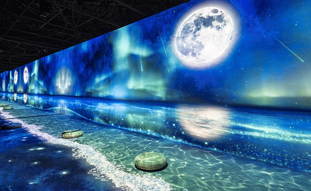 어민들의 삶의 터전인 갯벌 한쪽에 반짝이는 형태로 나타난 도깨비불은 한국화가 박소은이 허련의 '채씨효행도'를 토대로 그린 그림에 2D 애니메이션을 활용한 '인피니티 프로젝션 맵핑' 기법으로 재현됐다. 가로 11m의 와이드 스크린 양옆으로 거울이 배치돼 바다가 무한하게 확장하는 듯한 느낌을 선사했다.