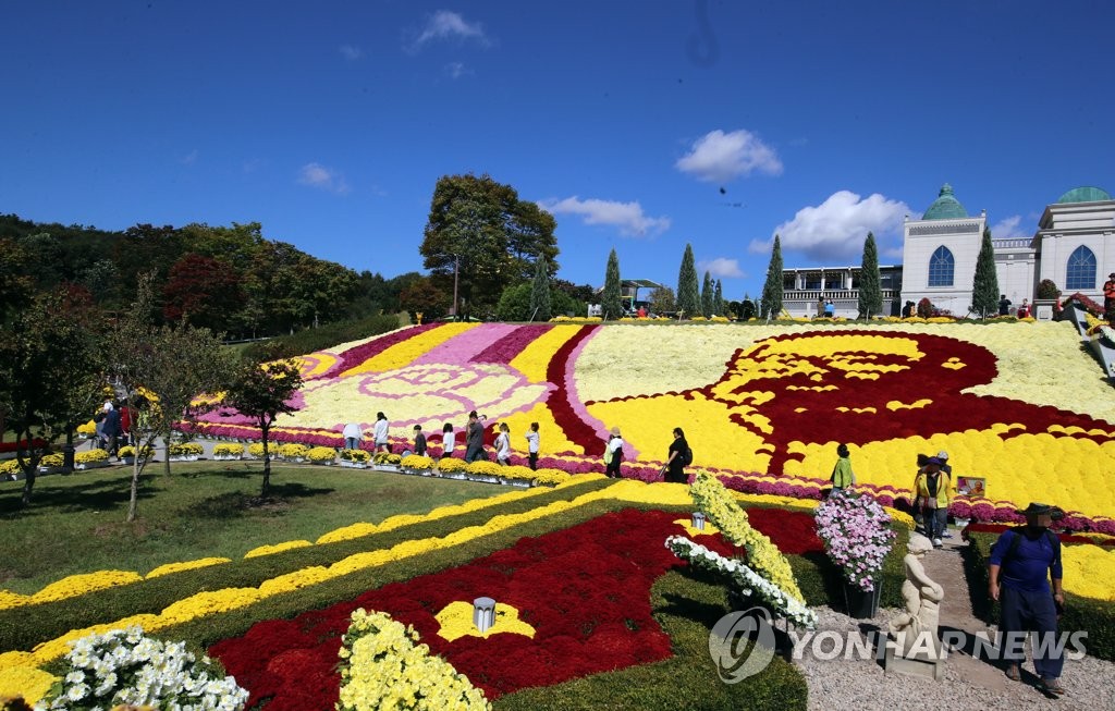 '형형색색의 국화꽃이 핀 '치즈캐슬'에도 관광객들의 발길이 끊임없이 이어졌다.