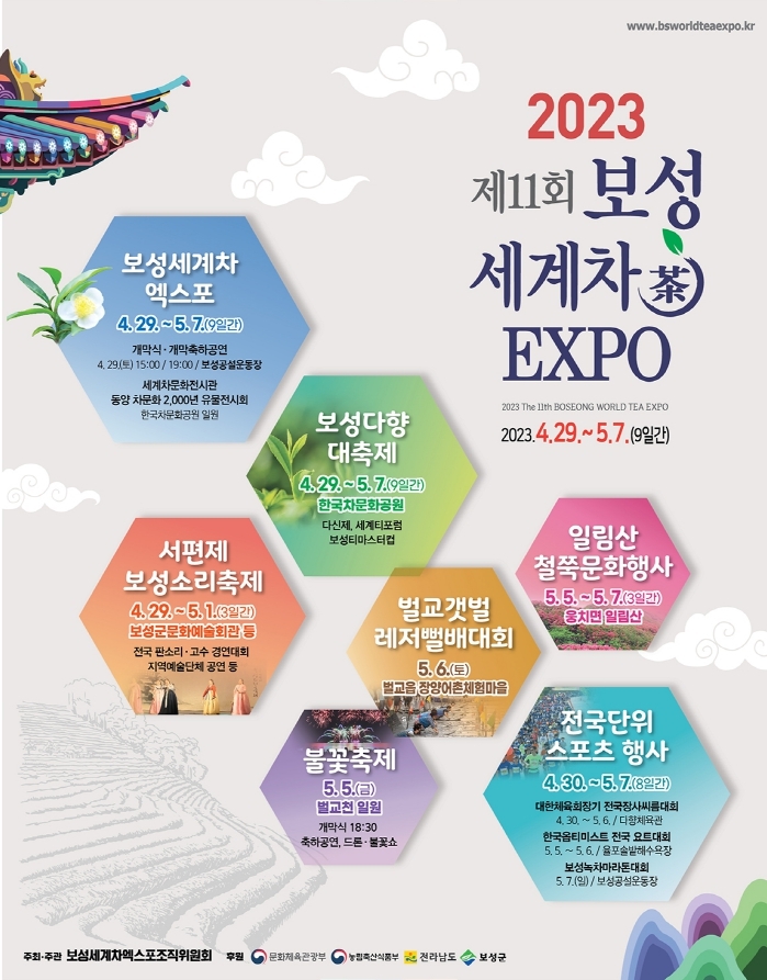 (보성=연합뉴스) 형민우 기자 = '2023년 제11회 보성세계차엑스포'가 오는 29일부터 5월 7일까지 '천년의 보성 차, 세계를 품다!'를 주제로 전남 보성 차문화공원 일원에서 열린다.
