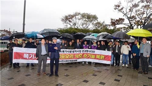 (강릉=연합뉴스) 유형재 기자 = 강릉시민사회단체협의회는 5일 강릉시가 경포호에 추진하는 인공분수 설치에 찬성하며 적극적인 추진을 촉구했다.