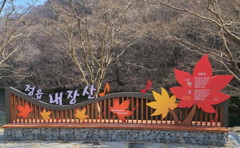 11일 전북 정읍시 내장산 국립공원 우화정 앞에 포토존을 겸한 노래비가 설치돼 눈길을 끈다.
