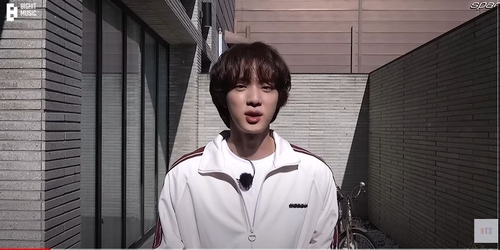 Appearing in a white gym suit before he had his hair cropped short, Jin said the video was recorded while he was filming for the Korean variety TV show, "Running Man." The show's episode where Jin appeared as a special guest was broadcast on Nov. 6.