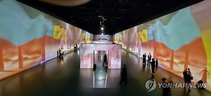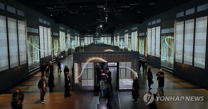 | ▲ 국가유산 미디어아트 기획 전시 '이음을 위한 공유' (강릉=연합뉴스) 유형재 기자 = 국가유산 미디어아트 기획 전시 '이음을 위한 공유'가 12일 강릉 아르떼뮤지엄에서 개막식을 하고 작품을 선보이고 있다. 이번 전시는 국가유산청과 국가유산진흥원이 보유한 3D에셋을 활용해 국가유산의 아름다움과 가치를 미디어아트로 표현한 것이다. 2024.11.12 yoo21@yna.co.kr |