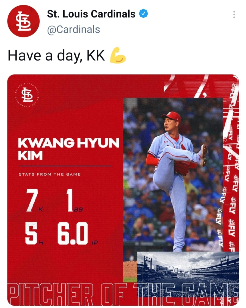 세인트루이스 구단은 트위터에 '잘했어, KK'라는 글을 올리며 김광현의 호투를 기념했다. 'KK'는 김광현을 쉽게 부르기 위해 현지에서 만들어준 김광현의 별명이다.