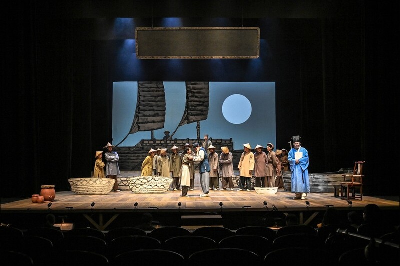 | ▲ 최척의 퉁소소리 (서울=연합뉴스) 강민지 기자 = 11일 오후 서울 종로구 세종문화회관 M씨어터에서 열린 연극 '퉁소소리' 프레스콜에서 배우들이 열연하고 있다. '퉁소소리'는 임진왜란과 정유재란 명청교체기의 주인공 최척의 여정을 담고 있다. 2024.11.11 mjkang@yna.co.kr |