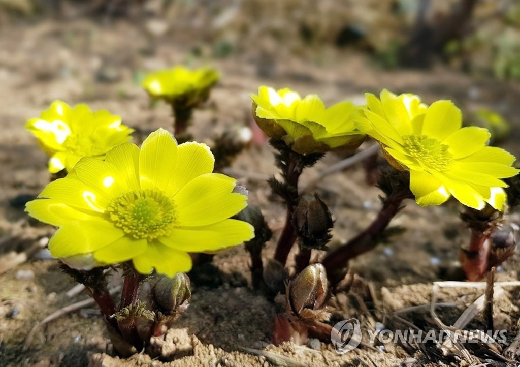 | ▲ 태안 야산에 봄의 전령사 '복수초' 활짝 (태안=연합뉴스) 이은파 기자 = 28일 충남 태안군 근흥면 한 야산에 봄의 전령사인 '복수초'가 활짝 피어 있다. 2021.2.28 sw21@yna.co.kr |
