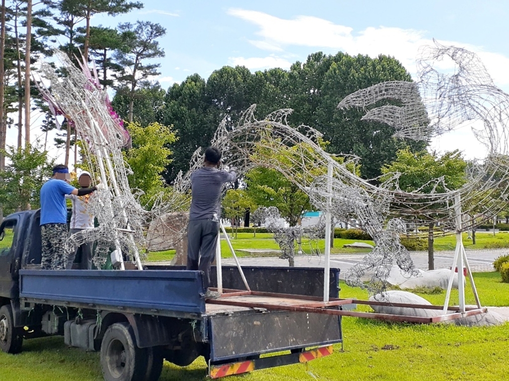 19일 충주시에 따르면 지난달 29일 라이트월드 시설물 철거를 위한 행정대집행을 개시한 이후 이날까지 주변 펜스, 정·후문 매표소 컨테이너 4동, 중앙탑·청자 조형물 3개, 지테이너 1개동, 풍차 등 중형조형물 6개, 동식물 소형조형물 230개를 뜯어냈다.