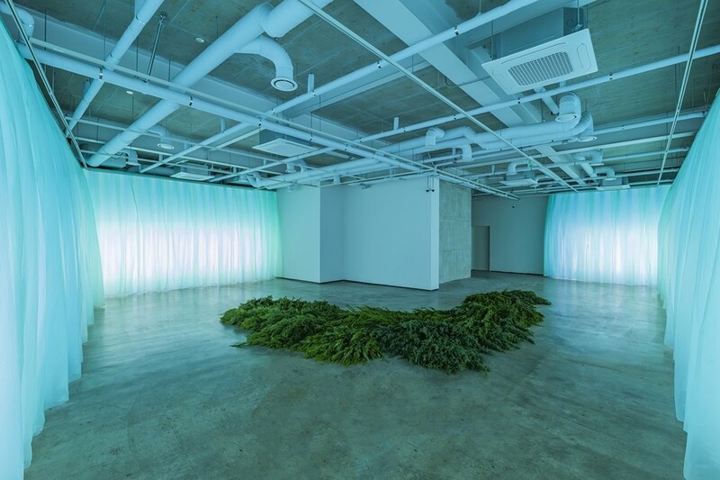 은은한 빛으로 둘러싸인 전시장 바닥에는 가지치기로 버려진 편백나무와 향나무, 삼나무의 가지를 모아 만든 박소희의 '르 솔'(Le Sol_soil. 흙)이 놓였다.