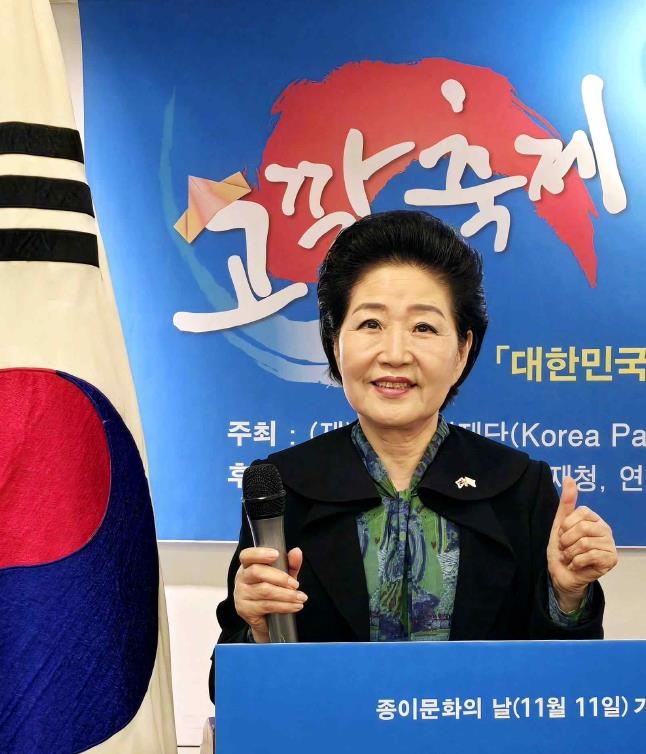 | ▲ 종이문화 세계화 선언문 낭독하는 노영혜 이사장 (서울=연합뉴스) '2024 고깔축제, 조이! 대한민국 종이접기·종이문화 컨벤션'에서 종이문화 세계화 선언문을 낭독하는 노영혜 종이문화재단 이사장. [종이문화재단 제공. 재판매 및 DB 금지] |