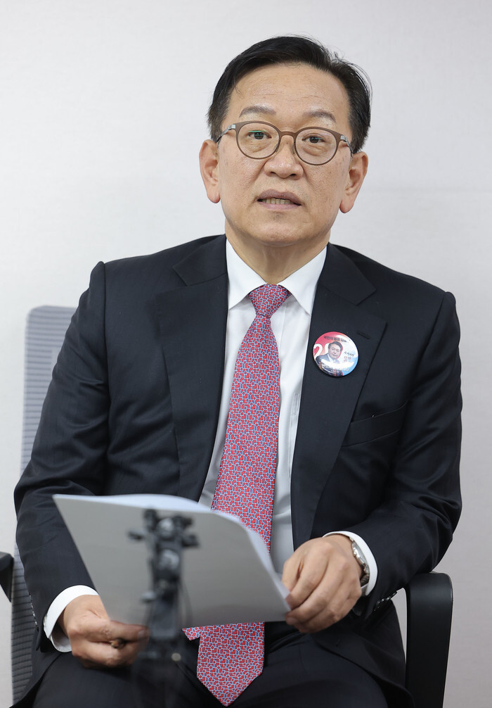 Seok Dong-hyeon, a lawyer for President Yoon Suk Yeol, who is on an impeachment trial for his short-lived imposition of martial law in December, attends a press conference at his office in Seoul on Feb. 19, 2025. (Yonhap)